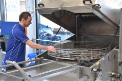 Lingenhöle Technologie senkt Wasserverbrauch mit Render-Reinigungsanlage auf ein Hundertstel: Die Anforderung von Lingenhöle an die Teilereinigung war kurz und klar: Zur nachfolgenden Wärmebehandlung müssen die Teile absolut fett- und fleckenfrei sein. Das von MAP Pamminger mit dem Hersteller Georg Render GmbH ausgearbeitete Konzept überzeugte nicht zuletzt, weil mit der Erfüllung dieser Forderung zusätzlich eine enorme Reduktion des Wasserverbrauchs einher geht.