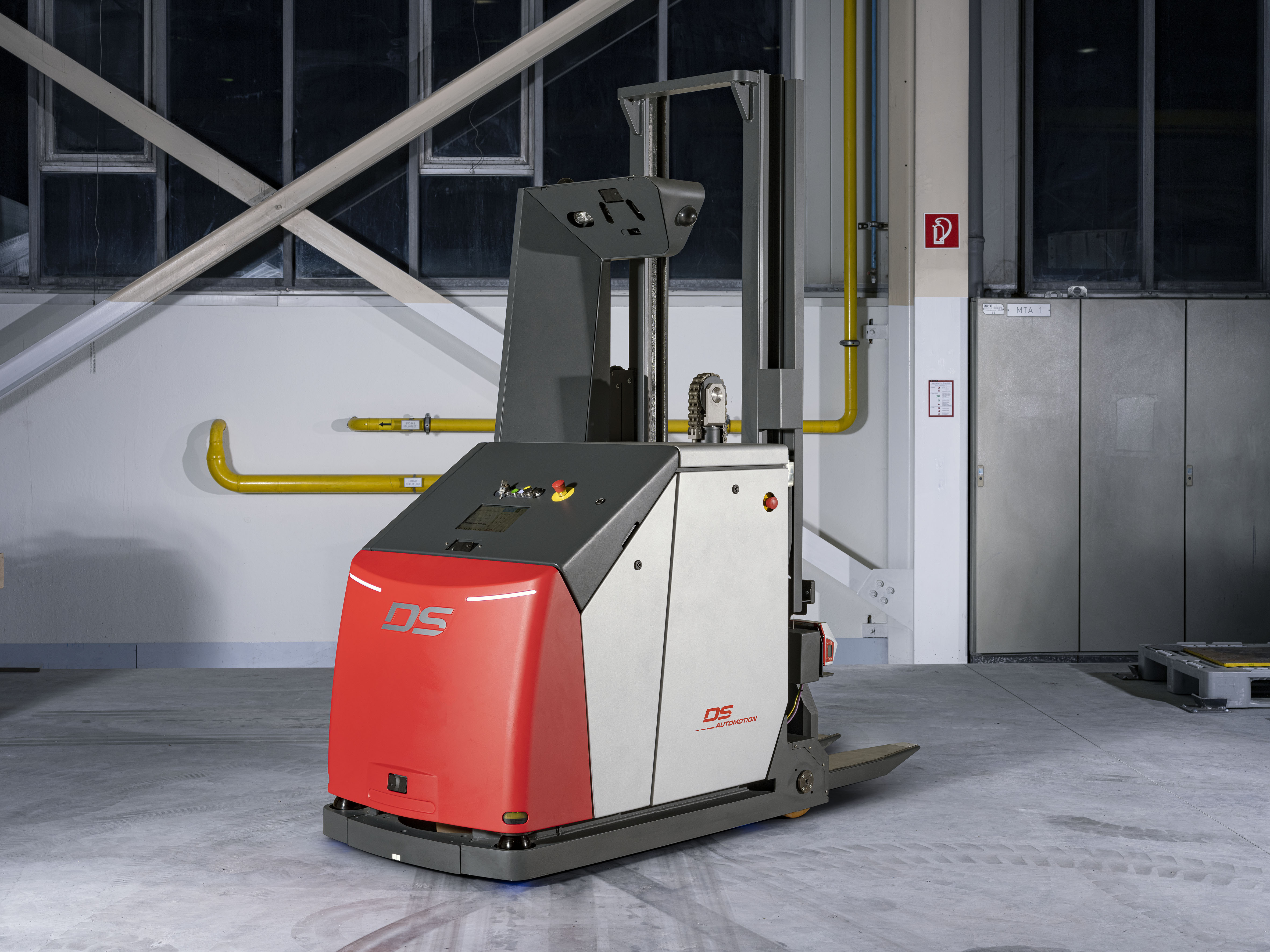 Kompakter mobiler Roboter AMY von DS Automotion mit smarter Lastübergabe: Mit AMY bringt DS Automotion einen äußerst kompakten und wendigen autonomen mobilen Roboter (AMR) für den Transport von Lasten bis 25 kg auf den Markt. Das kleinste Fahrzeug in der Flotte des führenden Herstellers aus Linz bietet volle Flexibilität mit planbarer Autonomie und lässt sich einfach in größere Flottenverbände integrieren. Sein ebenso revolutionäres wie einfaches Lasthandling ermöglicht den Aufbau kostengünstiger und wartungsarmer Intralogistiklösungen vor allem für das Kleinteilehandling.